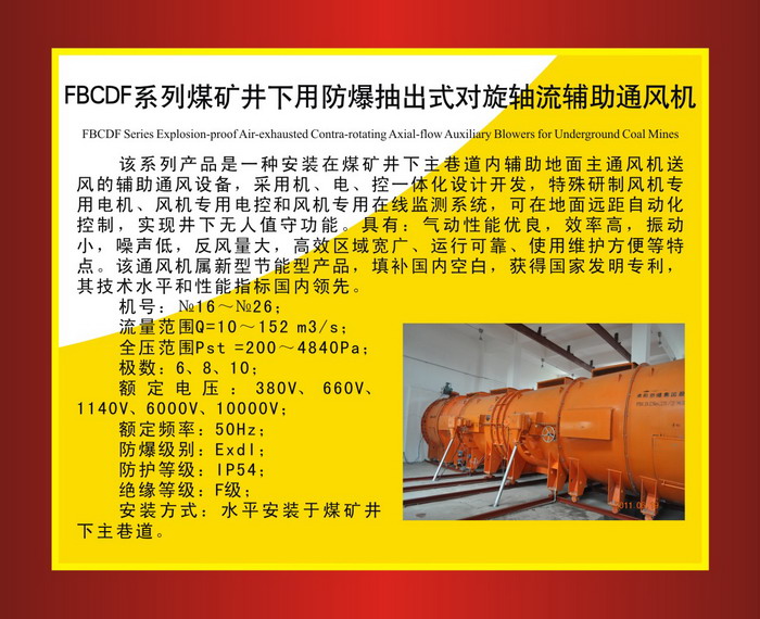 簡要說明:FBCDF系列煤礦井下用防爆抽出式對旋軸流輔助通風(fēng)機(jī)